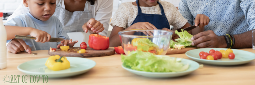 Your child should be eating at least three healthy meals a day, plus one or two snacks. Allow the child to be able to eat from the family pot. Meaning he or she should be able to eat the same food as the rest of the family.