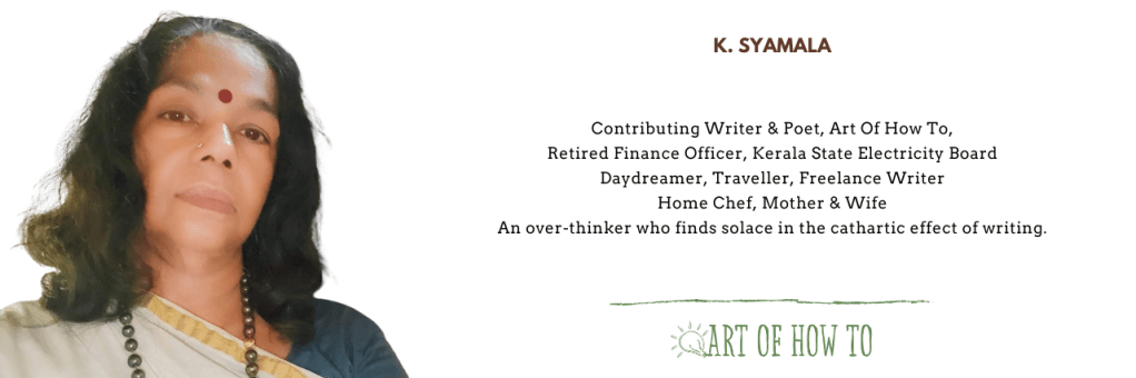 Nana playfully told me they couldn’t go and buy a chapel to wear, so we made one for lifelong use. Anyway, I decided not to go near the place or gaze at it again. The unbearable crying sound, the flowing saliva as foam from the mouth, and the tearful stares were like nightmares for me. The men stayed in the courtyard and prepared their meals, mostly rice gruel with jackfruit or tapioca curry, which they collected from our compound. The aroma of the masala and seasonings were stimulating, but we were used to something else in our home. They dug small pits in the ground and placed folded vatta leaves collected from the enclosure, and served kanji and curry, munching comfortably. Not far away, my watchful eyes followed every tiny fragment of their act. Although, after seeing me, they sometimes offered a share of their banquet, which I was dying to have, I knew my Nani didn’t like the idea of accepting anything from strangers, so I rejected their offer as if I didn’t want it.